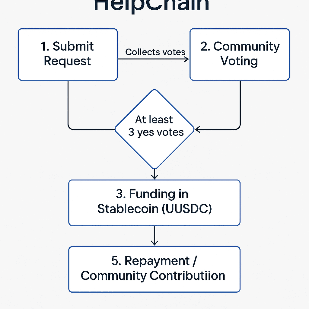 Introducendo HelpChain – una piattaforma alimentata da criptovalute e guidata dalla comunità dove le persone in reale bisogno possono ricevere aiuti finanziari tramite stablecoin (USDC/DAI). Ogni richiesta viene esaminata e votata dalla comunità utilizzando il nostro token nativo HCT. Trasparenza, equità e decentralizzazione – tutto in un unico sistema.