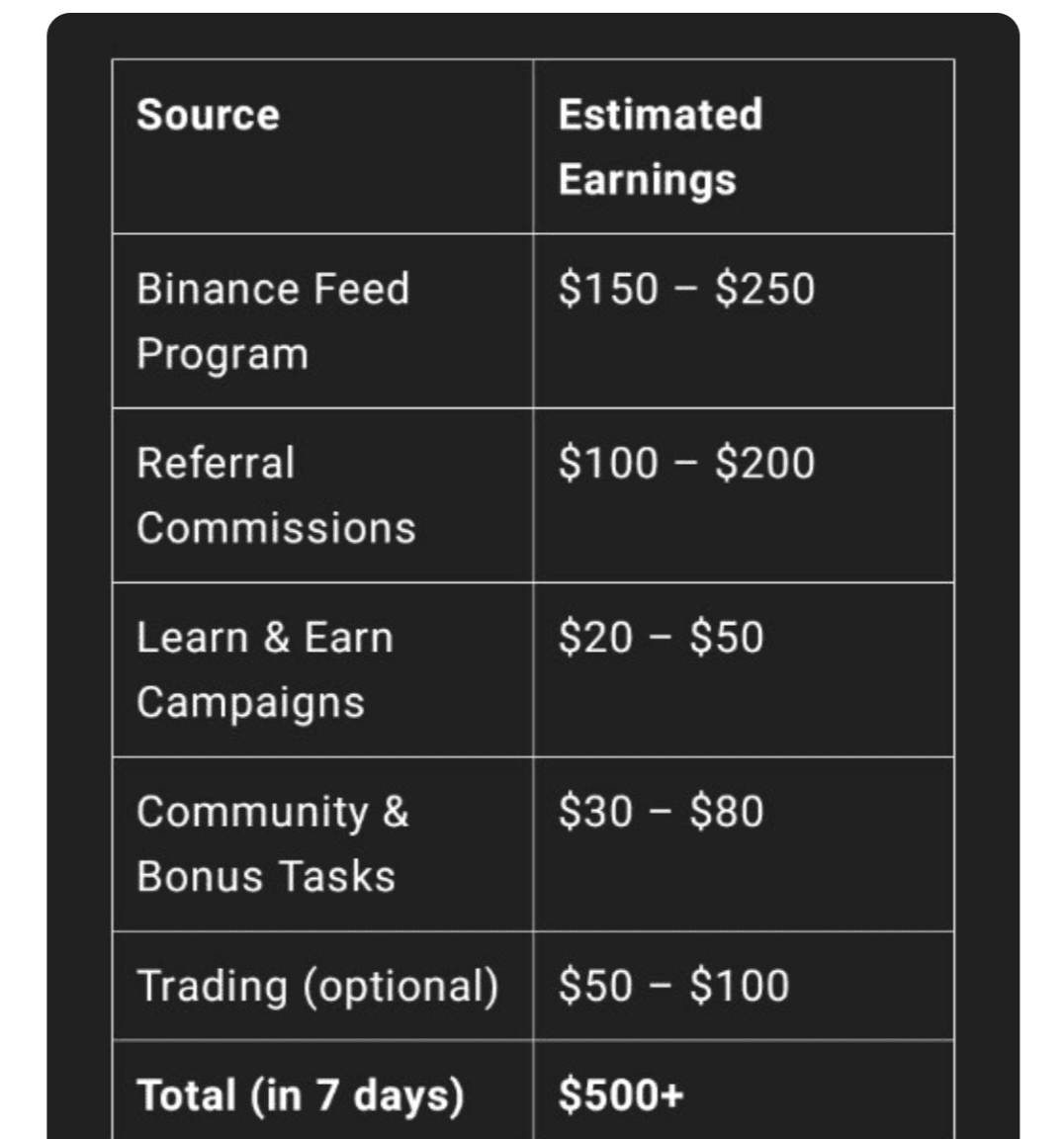 Molti credono che fare soldi in criptovaluta richieda capitale iniziale. Tuttavia, Binance offre varie opportunità per guadagnare significativamente (potenzialmente $500+) in una settimana, partendo da zero investimento, sfruttando le sue funzionalità e approcci strategici.