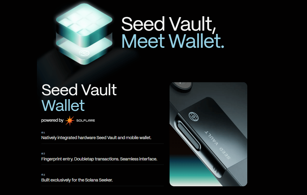 Il Solana Seeker cambia le regole del gioco con il suo Seed Vault — un vault sicuro, integrato nell'hardware, alimentato da SolFlare. Non è solo software per portafogli. È una zona completamente isolata per le tue chiavi private, intoccata da qualsiasi vulnerabilità di app o OS.