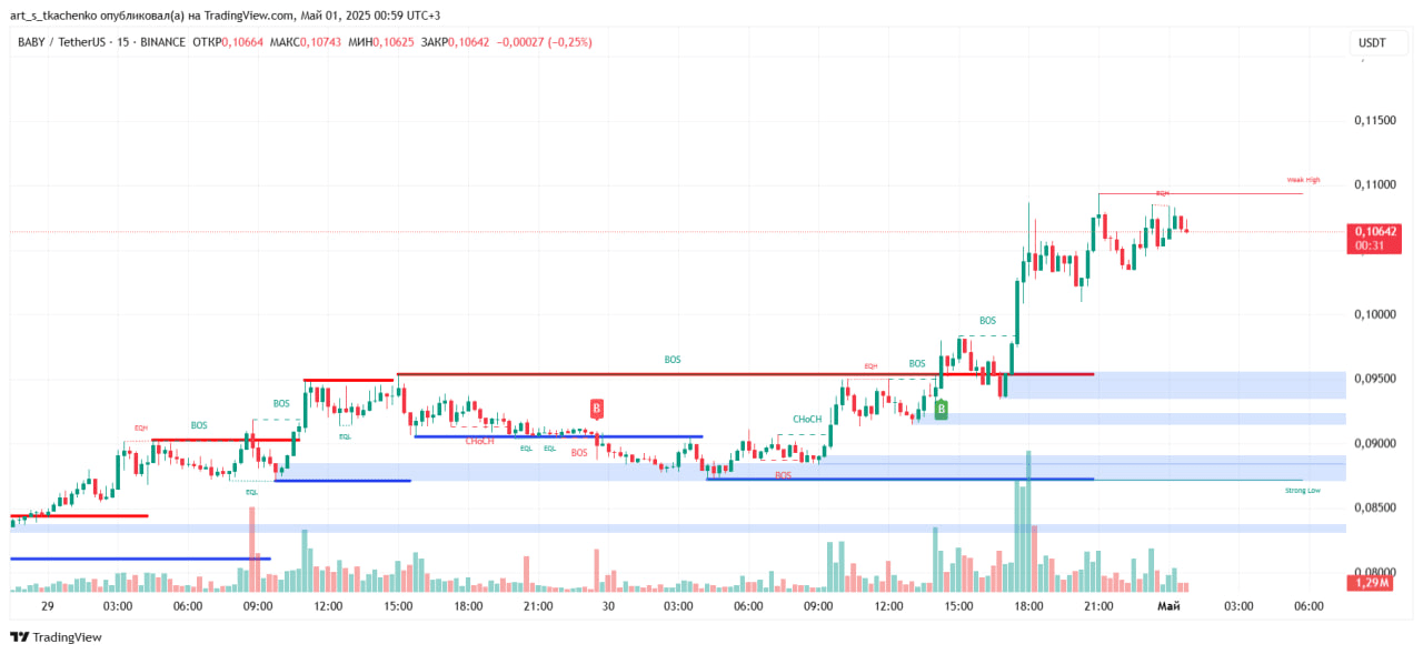 - Ingresso: $0.1060–0.1065 (rimbalzo con volume >1M BABY)