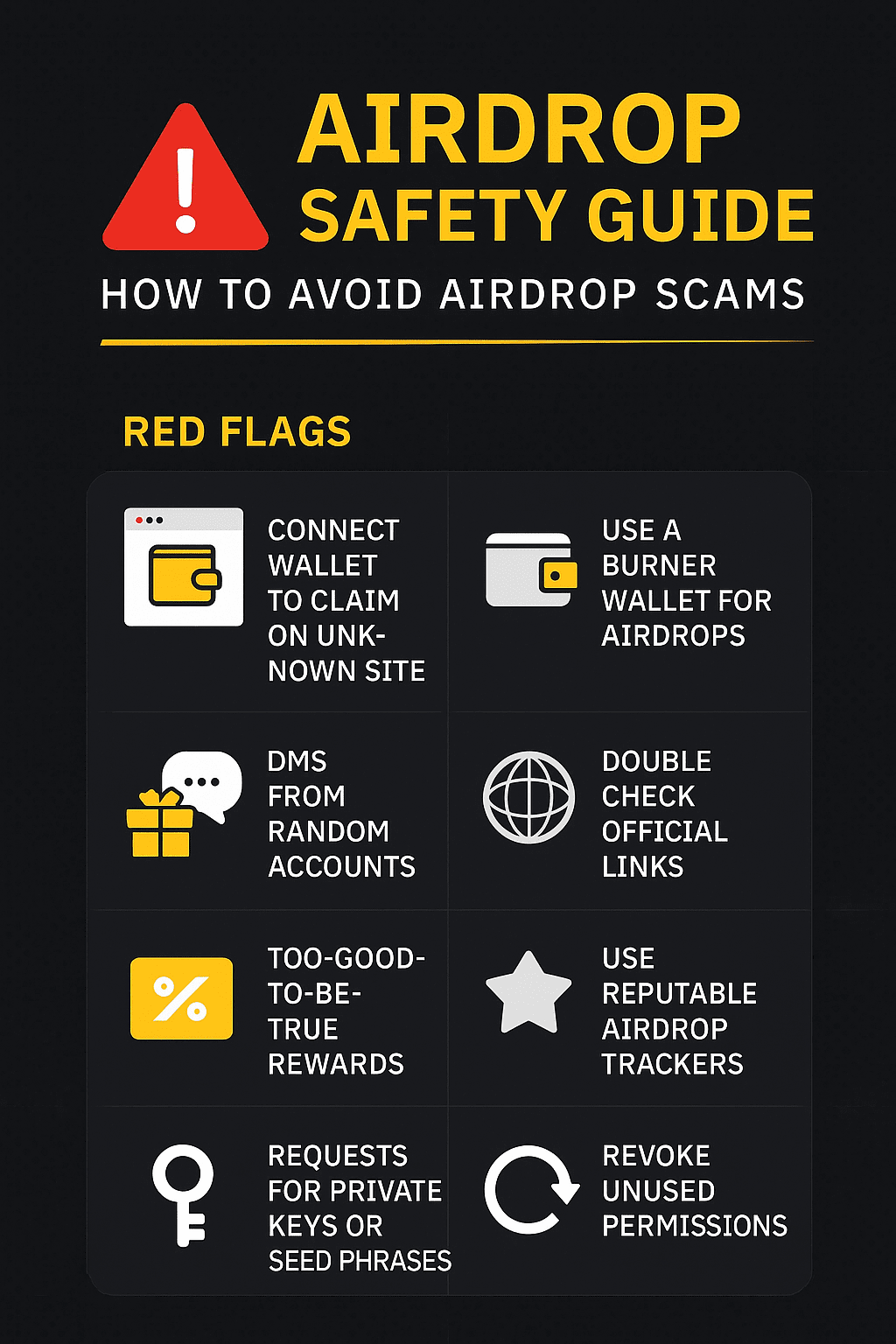 Gli airdrop possono essere un ottimo modo per scoprire nuovi progetti — ma un clic sbagliato può prosciugare il tuo portafoglio. Nel mondo crypto, la sicurezza non è facoltativa — è essenziale.