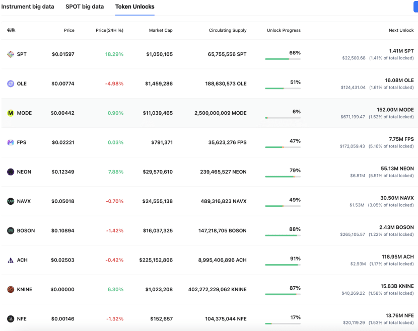 La situazione di sblocco di questi progetti potrebbe avere effetti di vario grado sui mercati correlati. I dati sopra sono in ora UTC+8, il grafico è dei dati di CoinAnk.