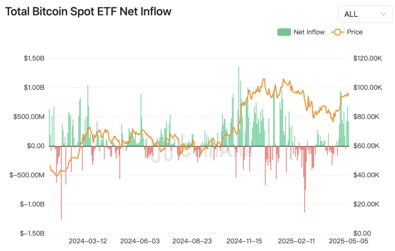 Dal punto di vista delle dimensioni del capitale, l'afflusso netto totale degli ETF Bitcoin ha superato i 40.2 miliardi di dollari, avvicinandosi al picco storico (40.78 miliardi di dollari del 7 febbraio 2025). Il fondo IBIT di BlackRock continua a guidare, riflettendo l'inclinazione degli investitori istituzionali a allocare Bitcoin tramite canali conformi. È importante notare che il divario di afflusso netto degli ETF rispetto alla produzione dei miner potrebbe sollevare preoccupazioni riguardo alla liquidità a medio-lungo termine nel mercato. Se la domanda rimane alta mentre l'offerta è limitata dalla bassa efficienza mineraria dopo il dimezzamento (produzione giornaliera di circa 450 Bitcoin), il conflitto domanda-offerta potrebbe ulteriormente intensificarsi.