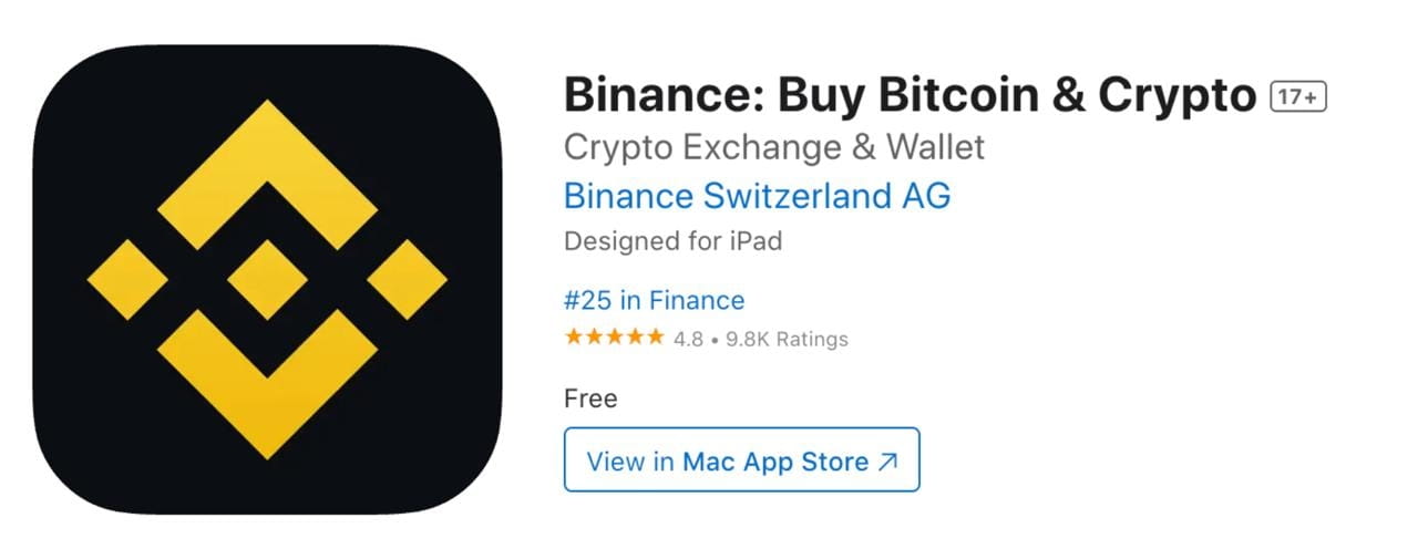 Poi ho controllato l'Apple App Store. Binance è attualmente al #25 nella categoria Finanza con un punteggio di 4.8 su 5, basato su quasi 10.000 valutazioni. L'app è molto apprezzata per il suo design intuitivo, le sue forti funzionalità e la sua velocità. Questo conferma le prestazioni costanti su diversi dispositivi.
