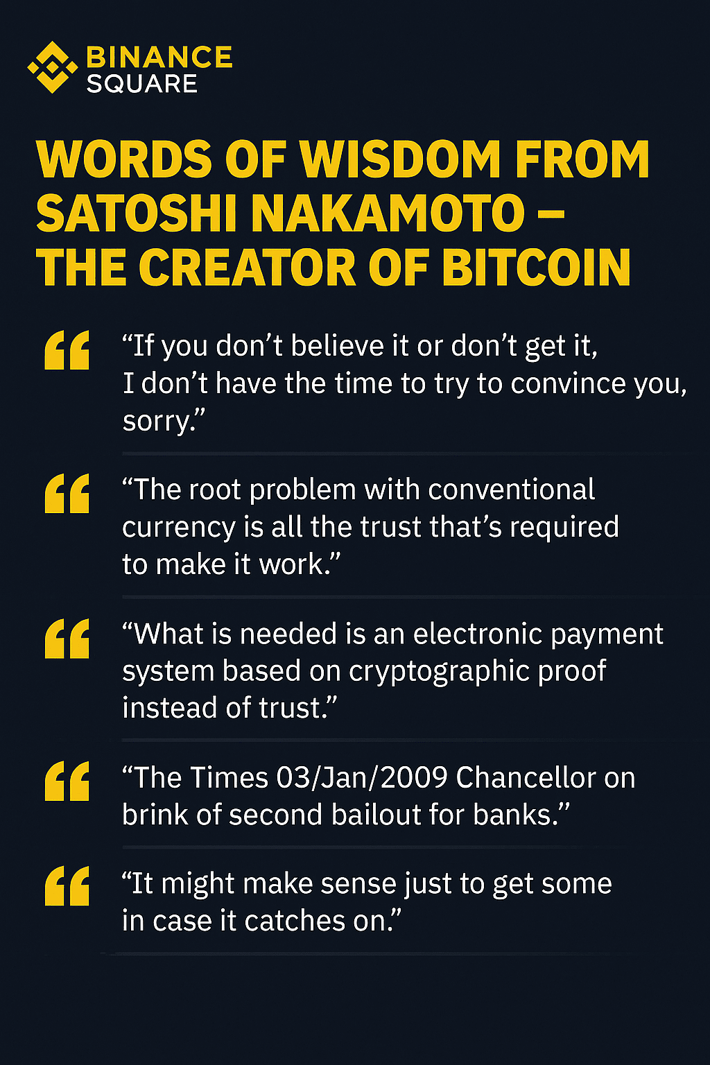 #Bitcoin #SatoshiNakamoto #CryptoWisdom #BinanceSquare #BTC #Decentralization #CryptoQuotes