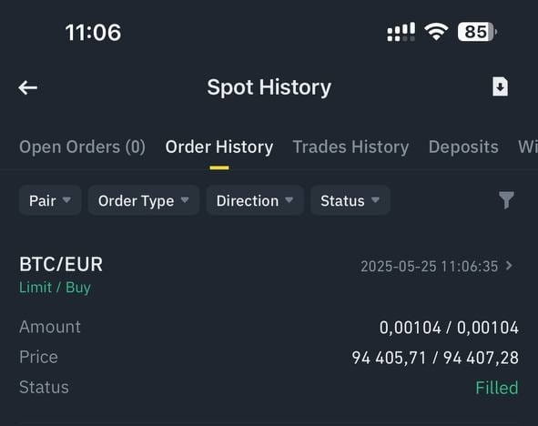 Ho piazzato un ordine limite sulla coppia BTC/EUR.