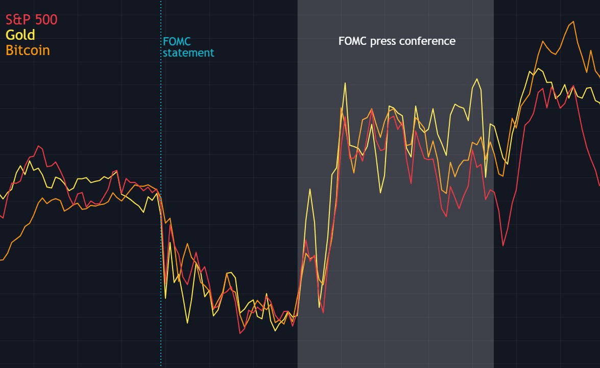 ...ma poi si è ripreso durante la conferenza stampa quando Powell ha confermato che il cambiamento nella formulazione era una "pulizia" della dichiarazione e non un'indicazione di un cambiamento nelle opinioni della Fed sull'inflazione.