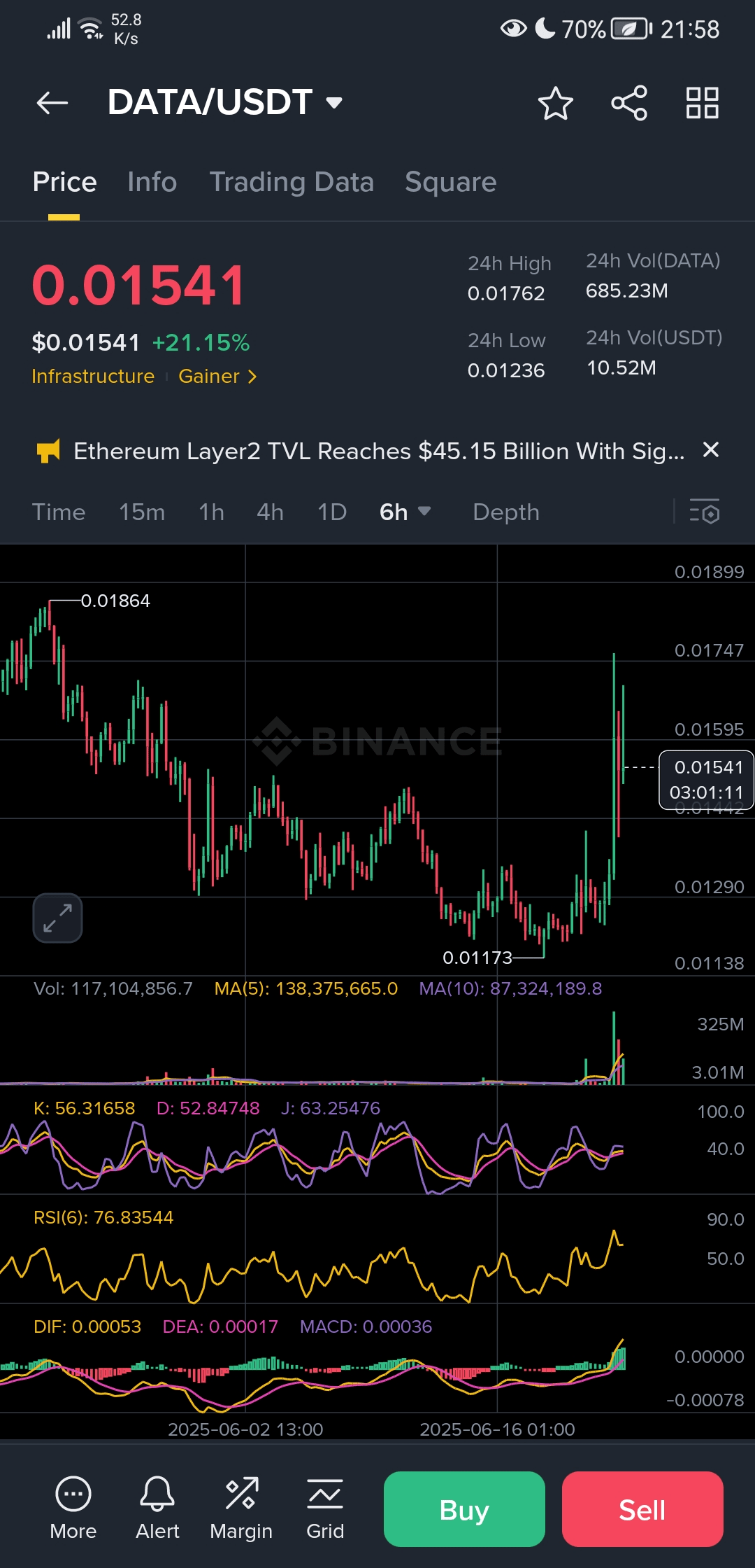 ✅ Esplosione di prezzo forte! Dopo il rimbalzo dal fondo 0.01173, DATA è decollata con forza per raggiungere 0.01595, ottenendo guadagni straordinari superiori al +21% nelle ultime 24 ore – mostrando un ingresso di liquidità forte e improvviso!