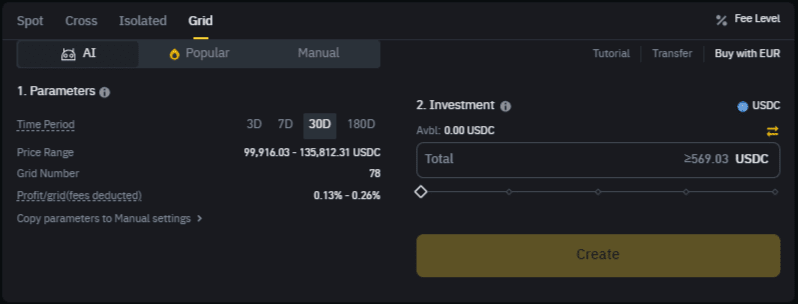 Fai ricerche approfondite (DYOR) sugli asset che intendi negoziare e sui parametri della griglia che imposti.