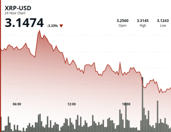 $XRP è sceso del 2% da $3.19 a $3.14 nelle 24 ore fino al 12 agosto, dopo aver toccato un massimo intraday di $3.32. La lunga battaglia tra Ripple Labs e la SEC si è finalmente conclusa in un accordo, alimentando un aumento del 208% nei volumi di trading a $12.4 miliardi. Tuttavia, l'azione del prezzo del token rimane alla mercé di correnti macroeconomiche più ampie, dalle frizioni commerciali globali alle politiche monetarie in cambiamento.