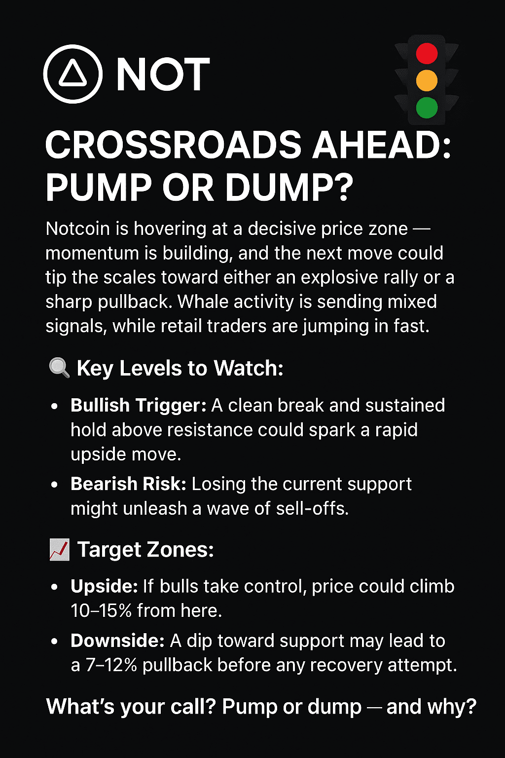 Notcoin è in un'area di prezzo decisiva — il momentum sta aumentando e il prossimo movimento potrebbe inclinare la bilancia verso un rally esplosivo o un forte ritracciamento. L'attività delle balene sta inviando segnali misti, mentre i trader al dettaglio stanno entrando rapidamente.