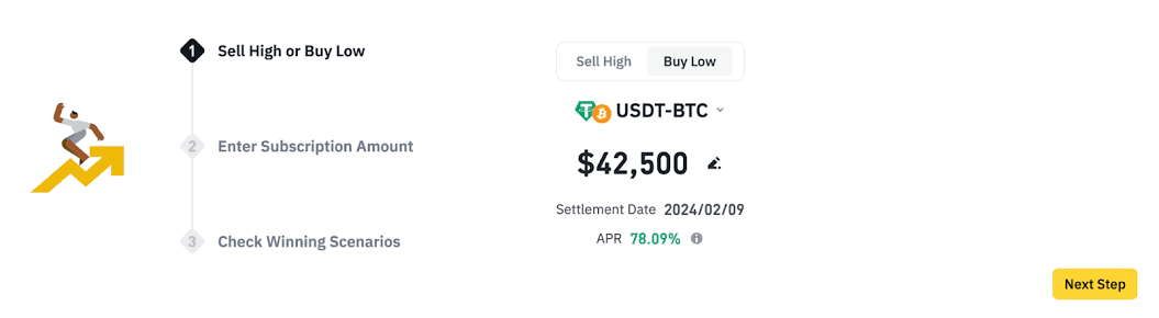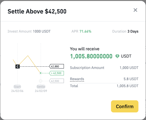 Se il prezzo obiettivo viene raggiunto → il tuo investimento viene convertito nell'altra valuta (ad esempio da BTC a USDT o viceversa) + guadagni interessi.