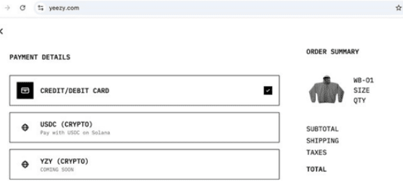 Anche il sito ufficiale di Yeezy di Kanye ha già attivato l'opzione di pagamento YZY, sembra piuttosto ufficiale.