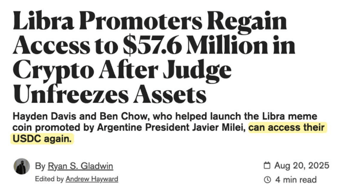 In modo curioso, cinque ore prima che Kanye annunciasse l'emissione di monete, un giudice americano ha appena sbloccato 57,6 milioni di dollari legati a Libra, e uno di questi wallet era controllato da Hayden Davis.