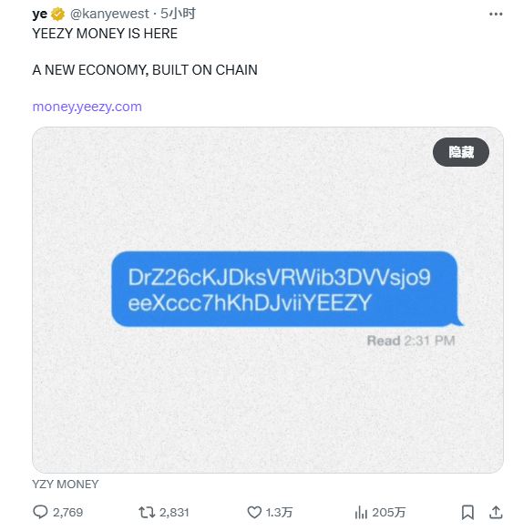 Nel frattempo, il sito ufficiale di YZY Money è stato lanciato, affermando di voler "combattere la centralizzazione".