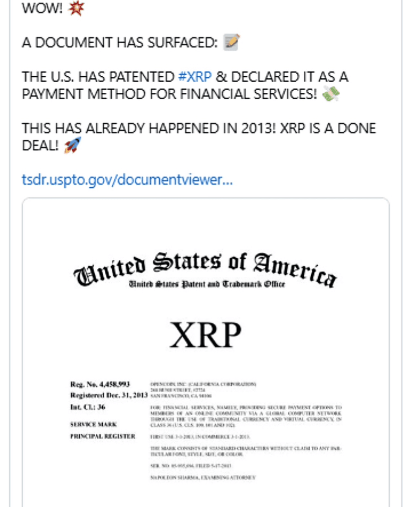 Ripple detiene infatti più brevetti legati all'innovazione nei pagamenti e nei regolamenti. Ma questa specifica richiesta non è una di esse, né è prova che XRP sia un “sistema di pagamento ufficiale degli Stati Uniti.”