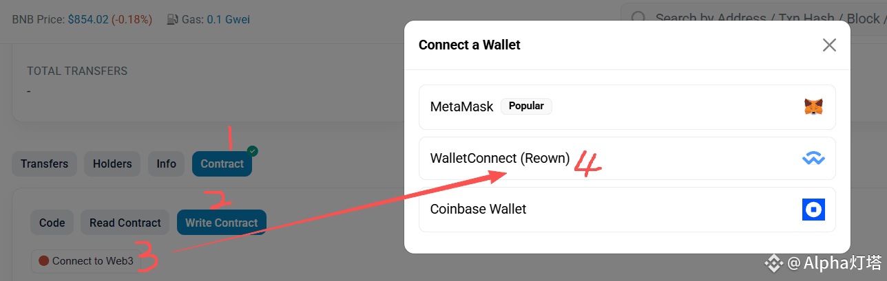2️⃣ Clicca sul menu in alto「Contract」➡️ Passa a「Write Contract」