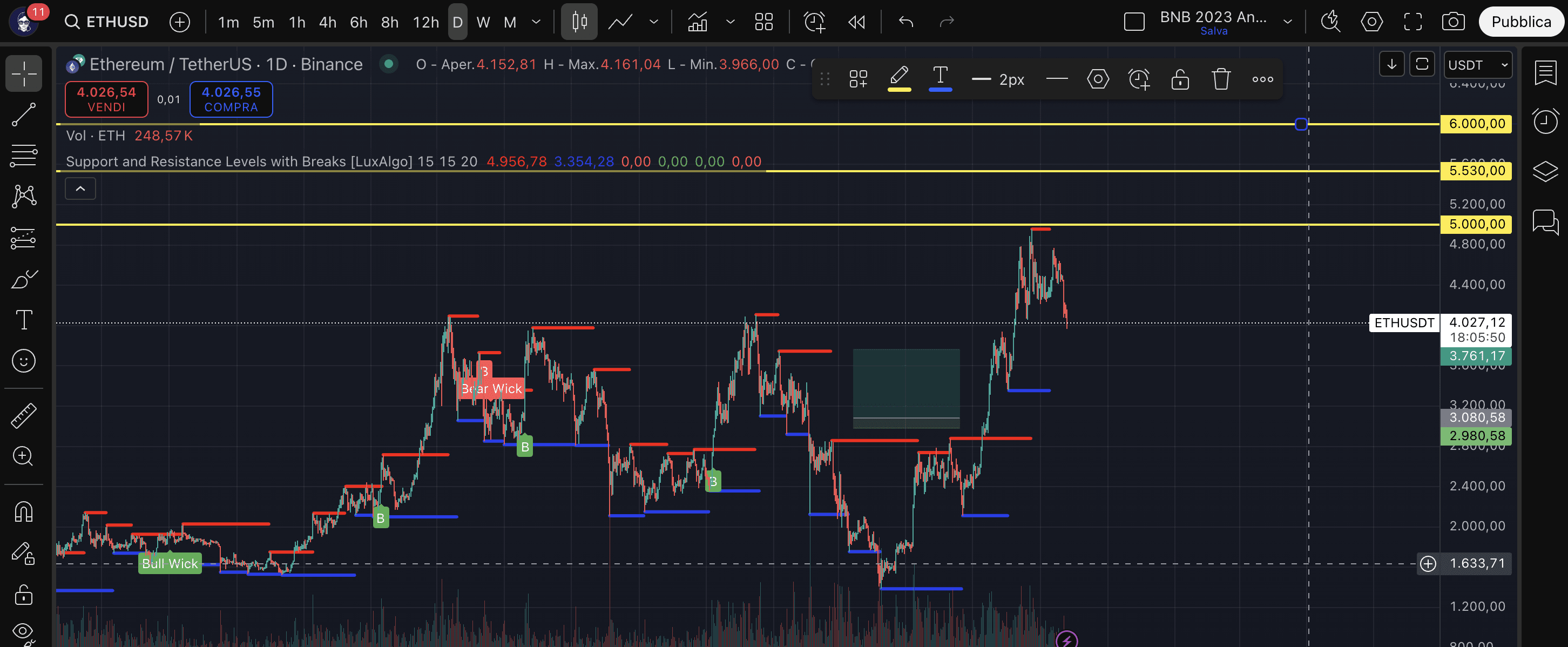 - Per raggiungere $5.530 (prossimo obiettivo): è necessario un guadagno del 14%.