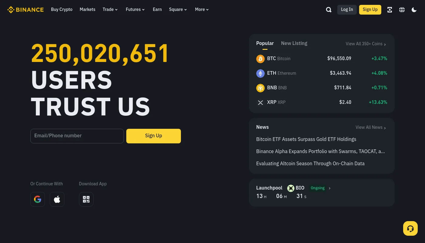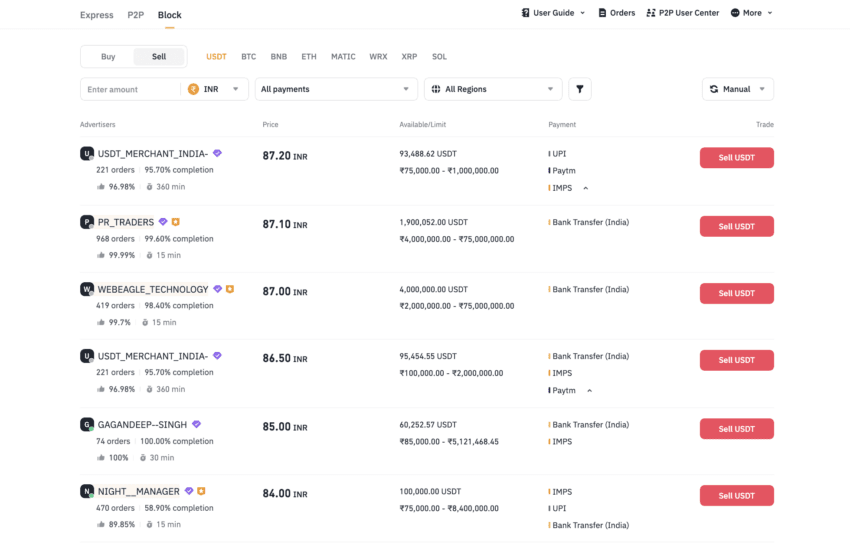Binance è uno dei più grandi exchange al mondo e offre una delle più grandi selezioni di altcoin. Anche se non è ufficialmente autorizzato in India, molti utenti si affidano alla sua piattaforma P2P per convertire INR in stablecoin come USDT.