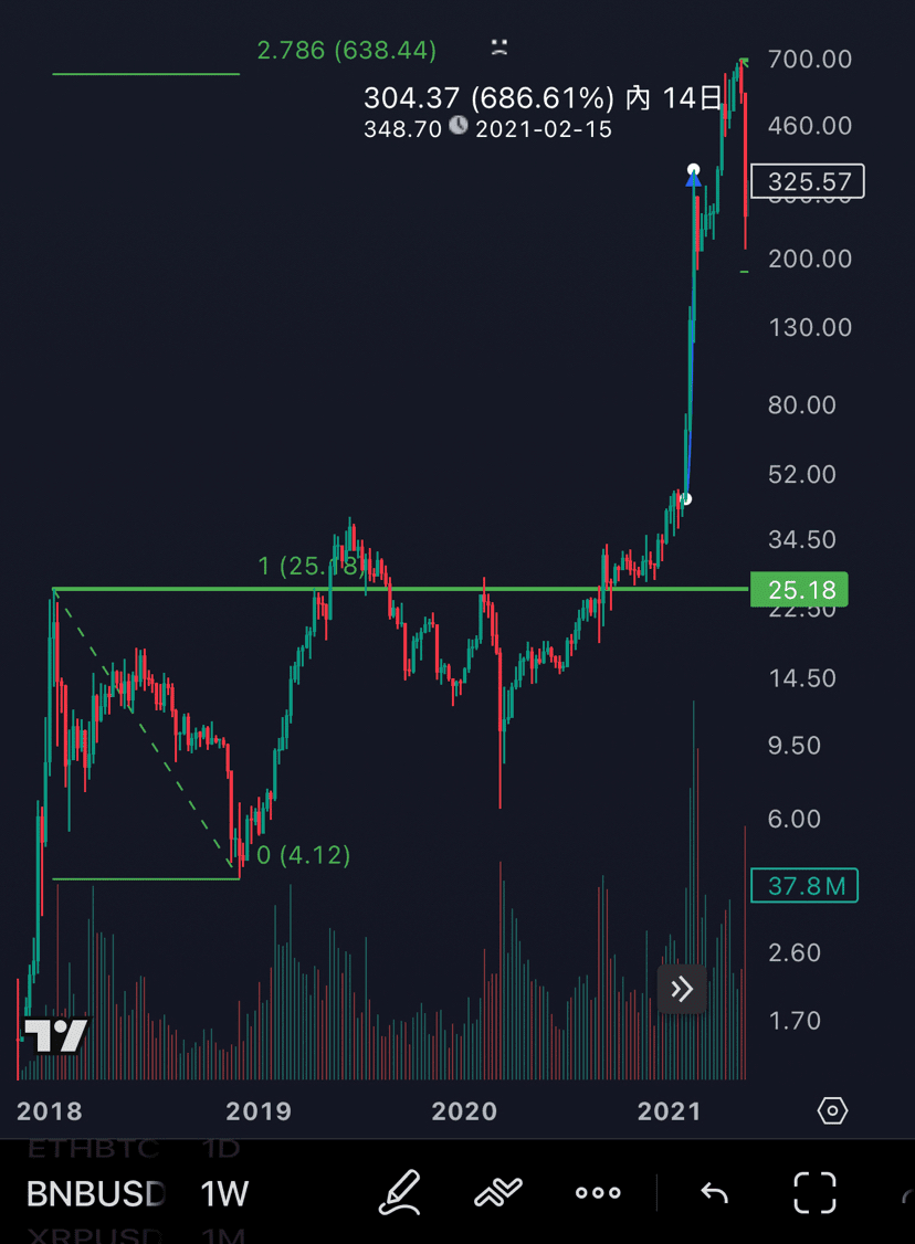 Nell'ultima fase di mercato toro, BNB è schizzato verso l'alto di 7 volte in sole tre settimane, praticamente senza dare tempo di reazione.