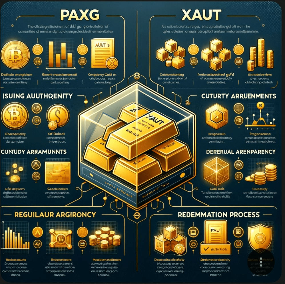 PAX Gold #PAXGUSDT e Tether Gold #XAUT sono entrambi token digitali che rappresentano la proprietà di oro fisico, ciascuno ancorato a un'oncia troy di una barra d'oro di buona consegna di Londra, ma differiscono per emittente, supervisione normativa, custodia, trasparenza e casi d'uso.