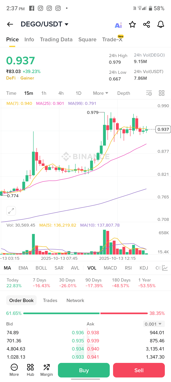 🚀🚀Negli ultimi 52 settimane, il $SNX è variato tra ₹71,425 e circa ₹84,100. ↗️↗️↗️🚀🚀
