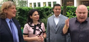 Greenwood (in abito grigio), cofondatore di OneCoin con Ruja Ignatova (vestito rosa), è stato condannato a vent'anni di carcere nel settembre 2023.