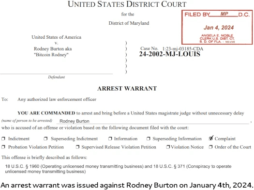 Rodney Burton, alias “Bitcoin Rodney”, è stato arrestato in Florida il 4 gennaio 2024.