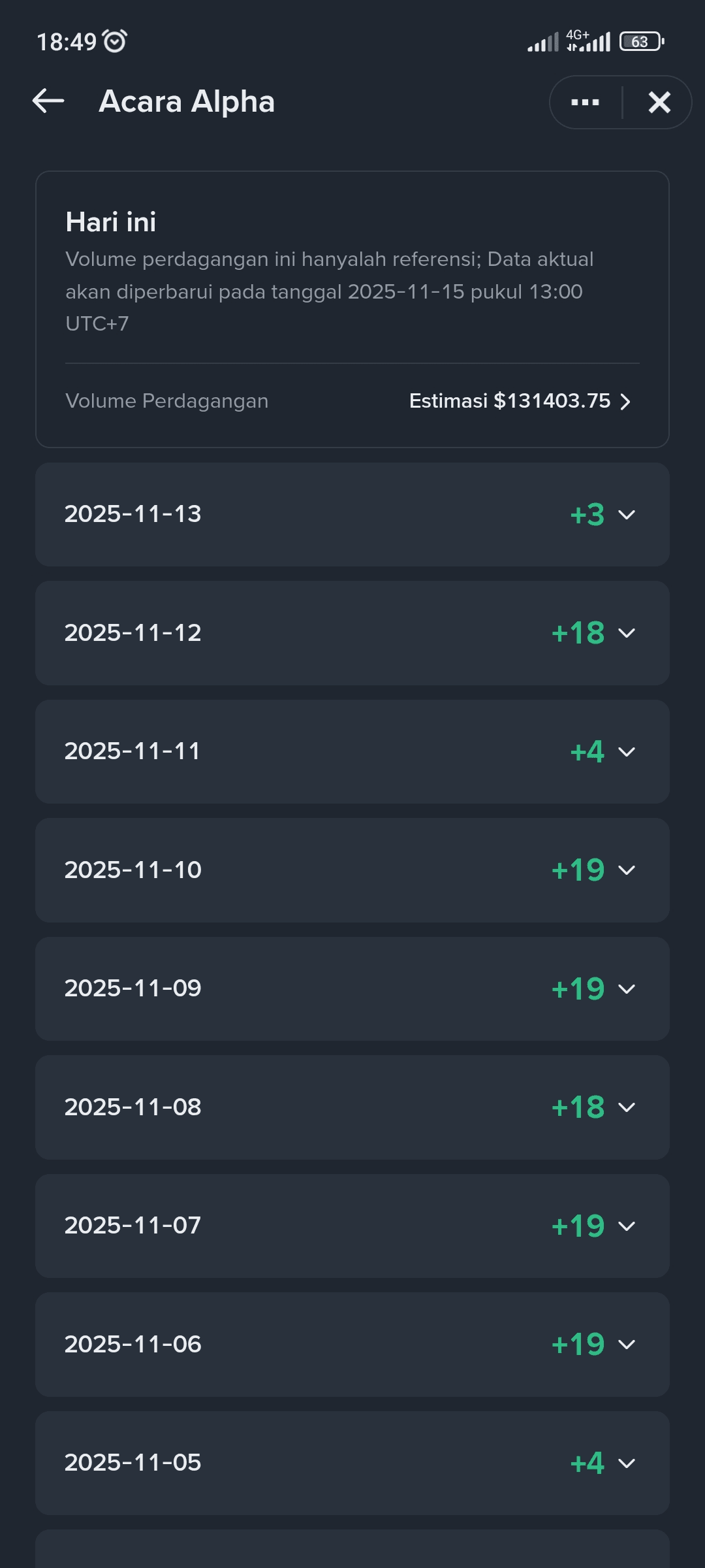 Acquista o detieni token dall'elenco Alpha (ad esempio, nuovi asset a bassa capitalizzazione nella BNB Chain). Ogni attività di trading/holding ti dà punti: