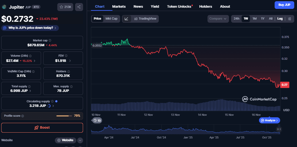 L'attuale azione dei prezzi di Jupiter | fonte: CoinMarketCap