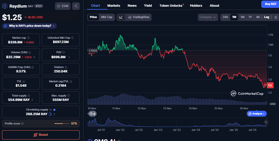 Raydium secondo i grafici | fonte: CoinMarketCap