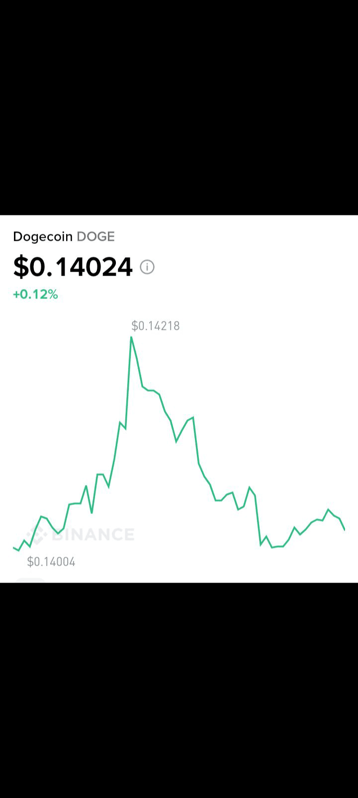 Non so voi, ma io comincio a panico 😅 Per rimettervi nel contesto, 3 giorni fa Dogecoin era in calo ed era molto molto preoccupante 🤔 Ieri è iniziato a risalire nell'ombra 🔺⏫ È salito a 0,14$ vi metto lo screenshot di quel famoso momento 😉