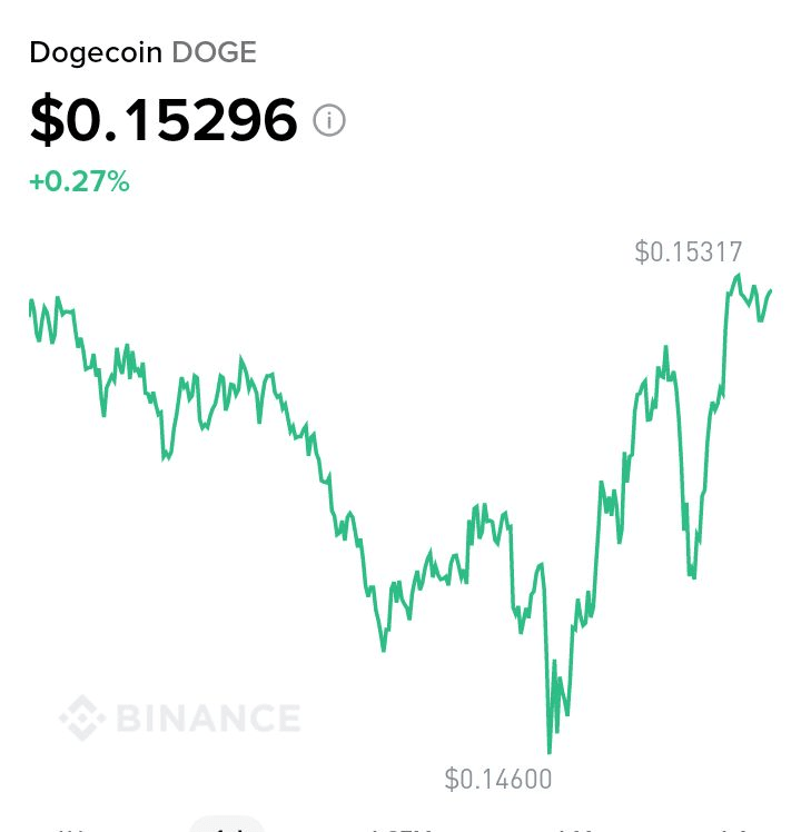 Voilà 3 jours maintenant qu'il monte heure après heure sans s'arrêter, et c'est clairement positif pour mon portefeuille moi qui détient 270$ de Dogecoin équivalent à 1782 Doge 👀🙋 Aujourd'hui je l'est vue remonter précipitamment à 0,15300$ 🤯