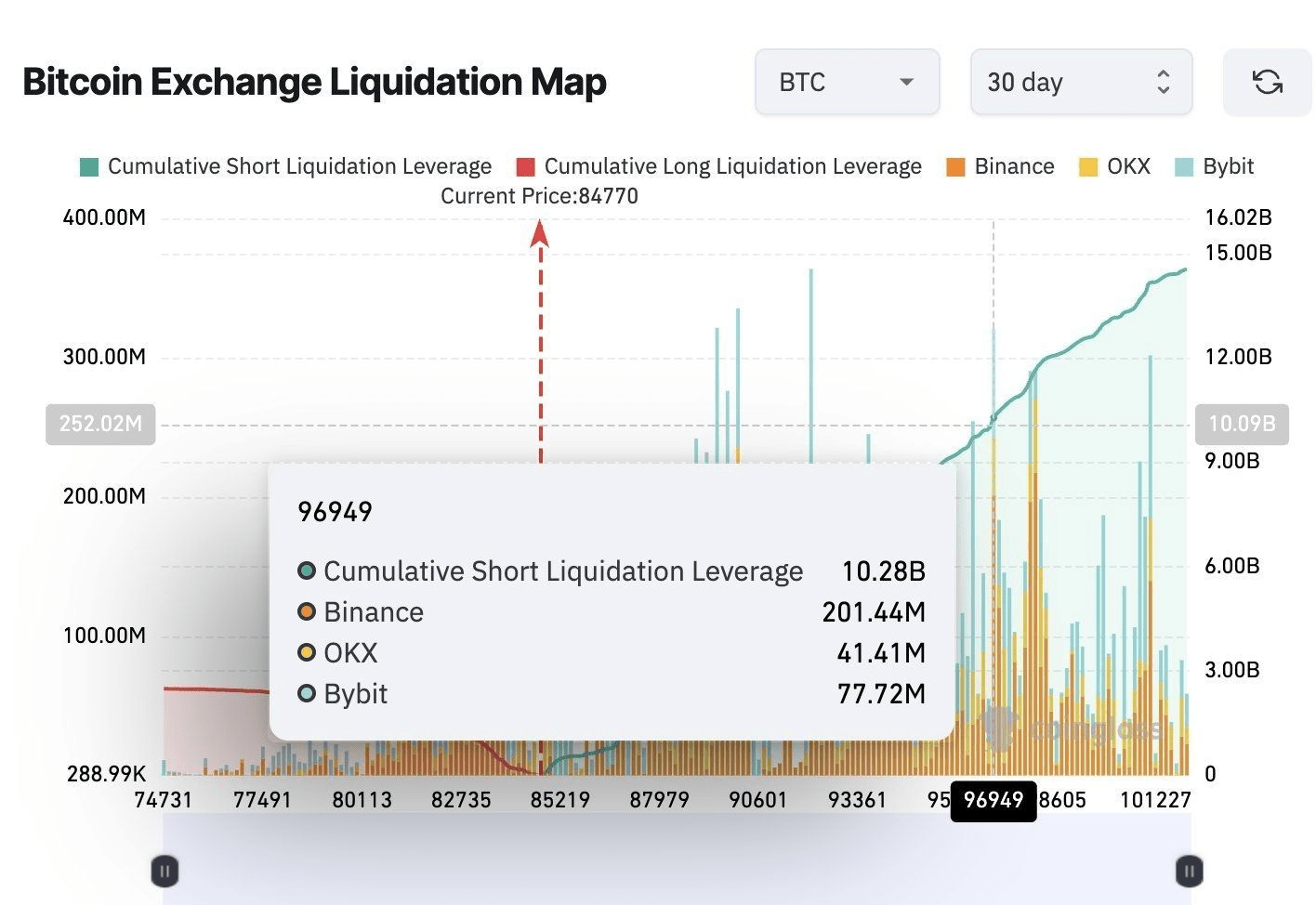 È in atto una massiccia trappola di liquidità. Se Bitcoin raggiunge $96,949, oltre $10.2 MILIARDI in leva corta saranno liquidati.
