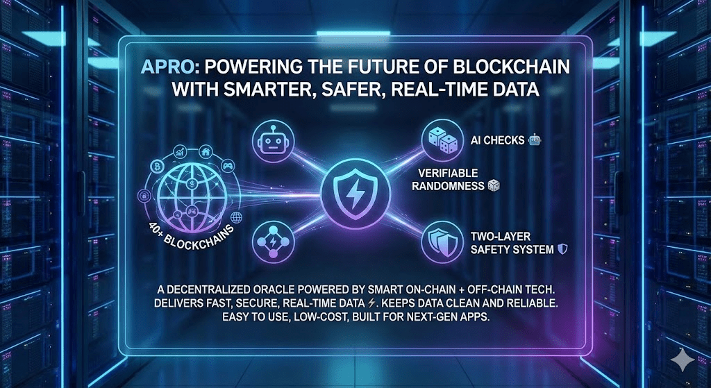 Un oracle decentralizzato alimentato da tecnologia smart on-chain + off-chain, APRO fornisce dati veloci, sicuri e in tempo reale ⚡. Con controlli AI 🤖, casualità verificabile 🎲 e un sistema di sicurezza a due livelli 🛡️, mantiene i dati puliti e affidabili. Supporta crypto, azioni, immobili, giochi & altro su oltre 40 blockchain 🌐—facile da usare, a basso costo e progettato per app di prossima generazione.