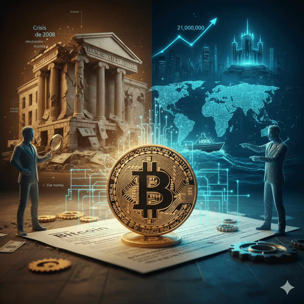 Il Bitcoin è nato al culmine della crisi finanziaria del 2008, emergendo come una risposta diretta alle fragilità del sistema bancario tradizionale e all'emissione sfrenata di denaro da parte dei governi. Il documento di sole nove pagine pubblicato sotto lo pseudonimo di Satoshi Nakamoto ha introdotto una miscela rivoluzionaria di matematica, scienza e filosofia. Oggi, ciò che è iniziato come un manifesto in un forum online è diventato uno degli attivi più preziosi del mondo e una speranza di ricostruzione del sistema finanziario.