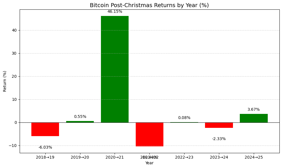 ๐ BTC spesso aumenta prima di Natale, ma i guadagni post-Natalizi sono misti.