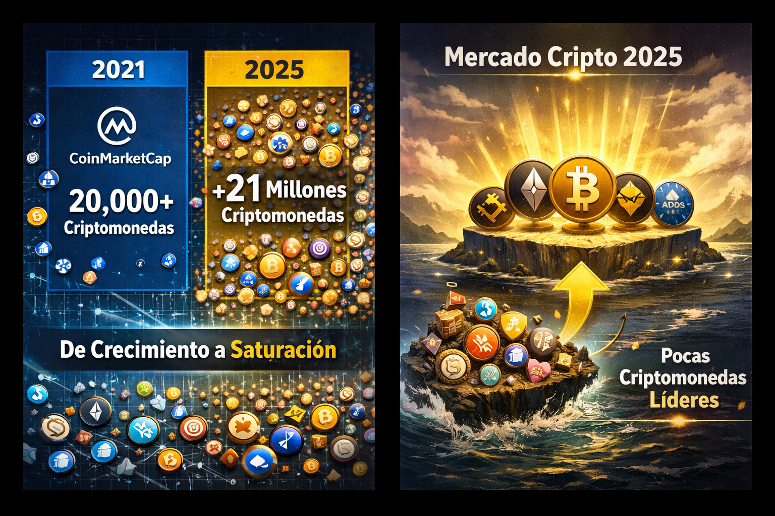 Questo dato, da solo, dice molto su come è evoluto il mercato. Non riflette solo crescita, ma anche una enorme dispersione di capitale, una frammentazione estrema e, nella maggior parte dei casi, una chiara mancanza di reale utilità nei progetti. La grande maggioranza di questi token manca di valore intrinseco, casi d'uso solidi o una comunità attiva che li supporti a lungo termine.
