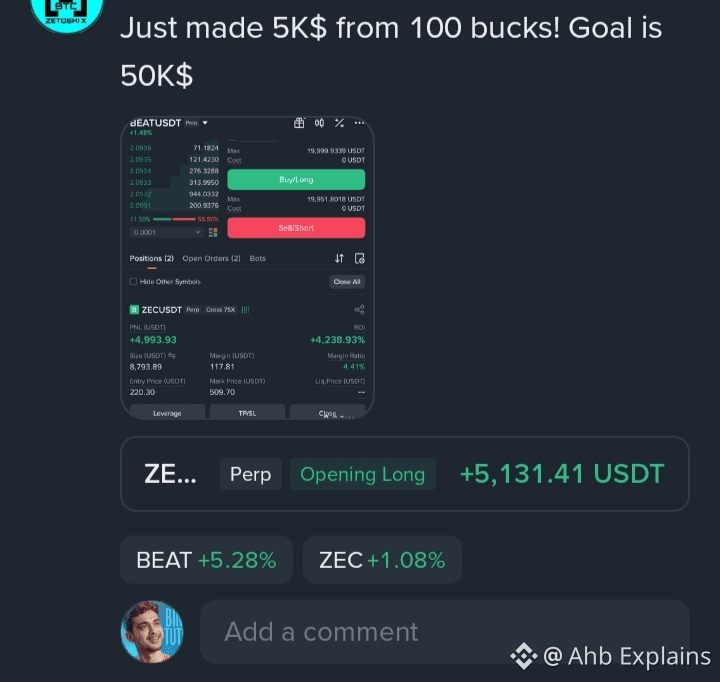He is trading futures and his goal is 50K, I guarantee that soon his wallet will face 0.00 situation. Plus he will not stay happy. Futures trading hits directly to emotions.