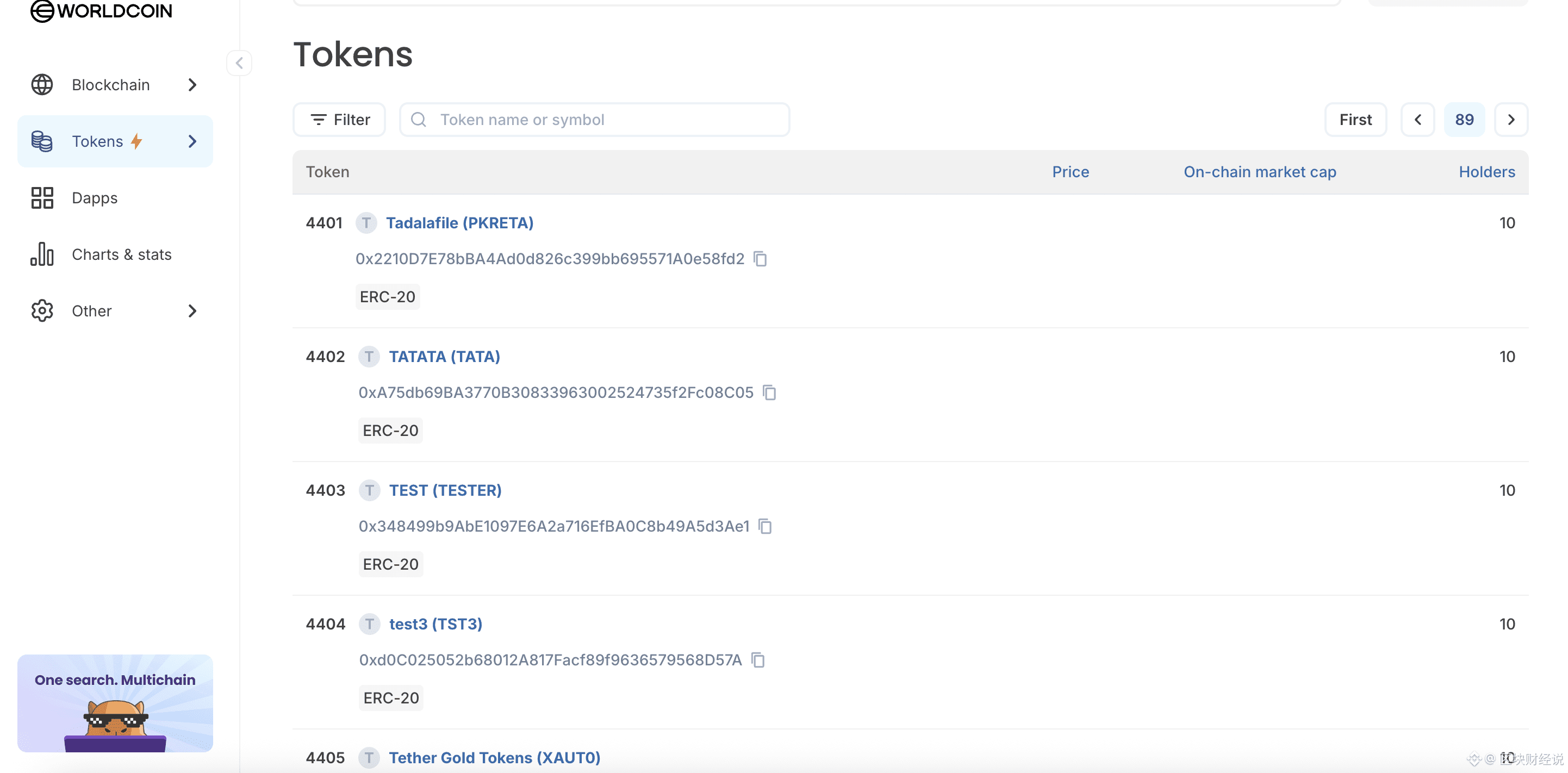 📌 这说明世界链不仅有官方或早期项目发行的代币,还吸引了用户或开发者跨链资产引入与实验性发行。
