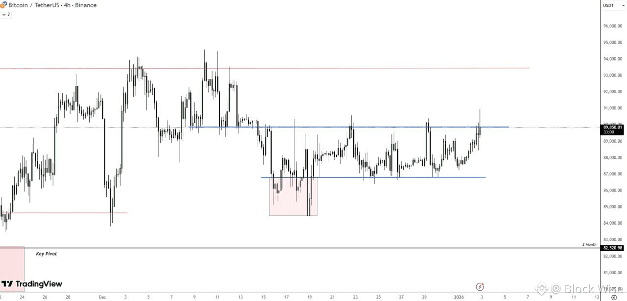 - Post aggressive selloff , price playing out in the compressed range between sub 87k - 90k .