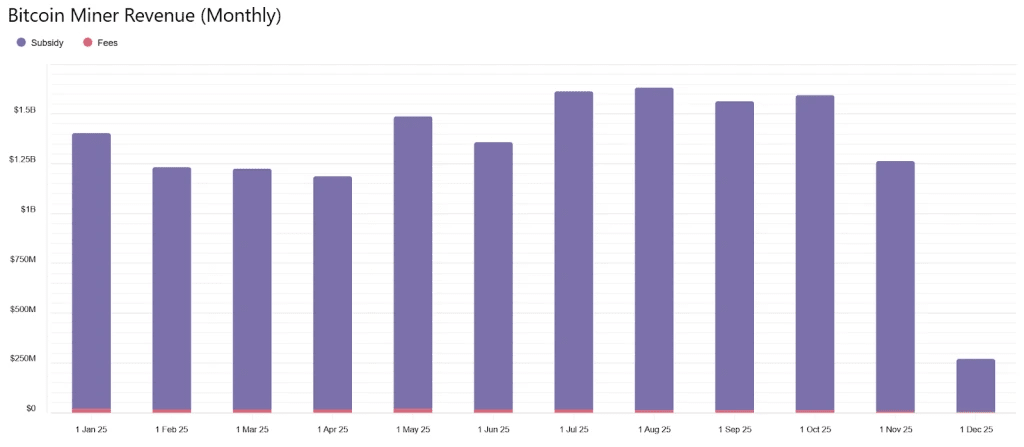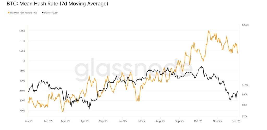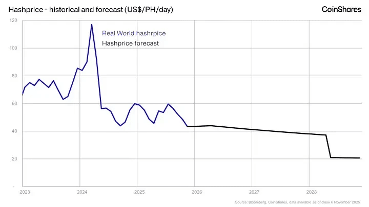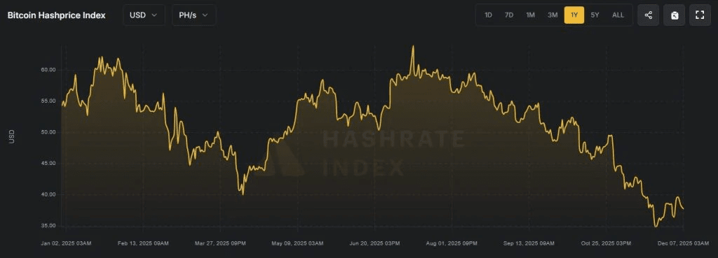 A seguito del crollo di novembre della prima criptovaluta al di sotto dei 83.000 dollari, il prezzo dell'hash ha raggiunto il minimo annuale di ~$35 per PH/s. Nonostante il successivo recupero, il valore non è salito sopra i 40 dollari.