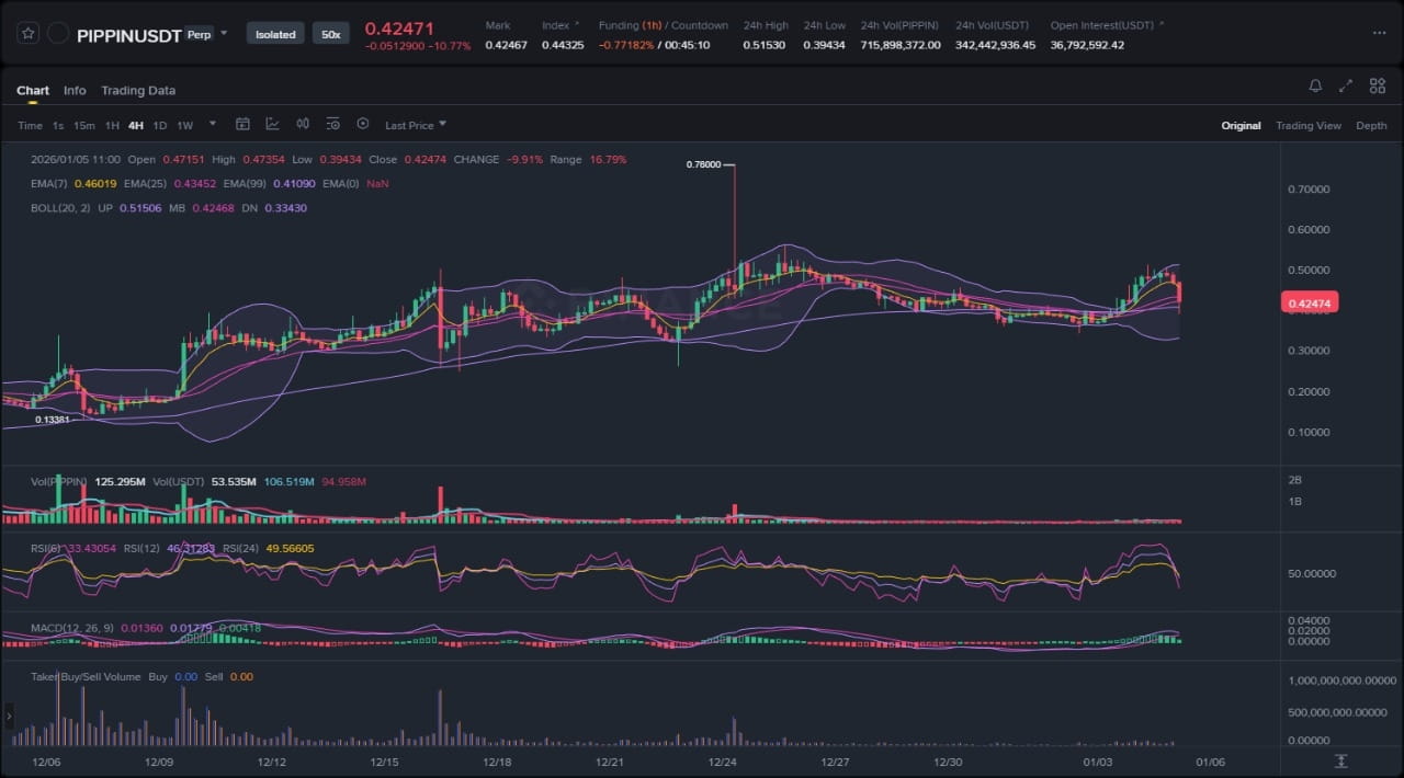 PIPPIN ha innescato un forte rally del 31% nelle ultime 24 ore, interrompendo giorni di pressione ribassista in mezzo a un rimbalzo più ampio del settore delle meme coin, ma il calo delle metriche dei detentori e le opinioni contrastanti degli analisti sollevano interrogativi sulla sostenibilità. In qualità di analista senior del mercato delle criptovalute su Binance Square, questo pezzo analizza il grafico allegato di 4 ore insieme ai tre titoli di notizie più recenti per svelare l'azione dei prezzi sottostante, i temi guidati dalle notizie e gli scenari probabilistici per i trader che navigano in questo swing volatile.