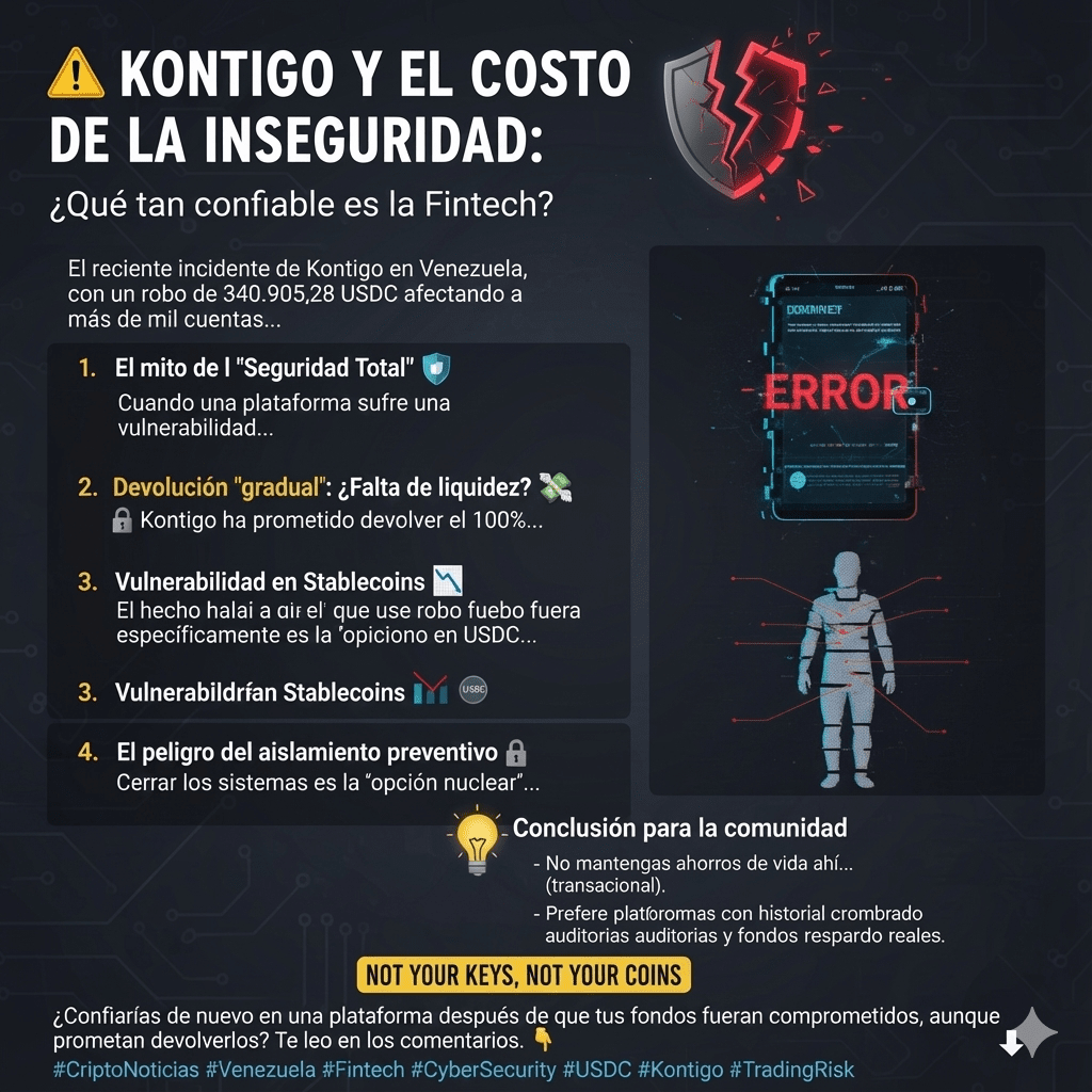 L'incidente recente di Kontigo in Venezuela, con un furto di 340.905,28 USDC che ha coinvolto più di mille conti, mette in evidenza una realtà scomoda: non tutte le portafogli digitali sono pronte per la guerra della cybersecurity.