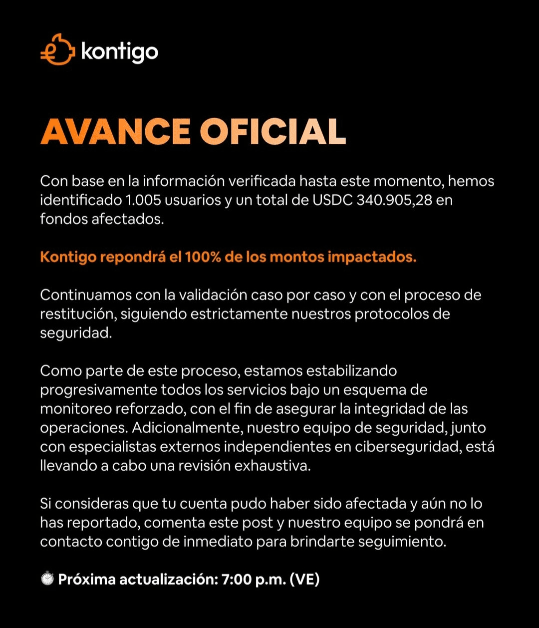 Kontigo ha promesso di restituire il 100% degli asset, il che è positivo. Tuttavia, l'annuncio che sarà graduale e dopo convalida individuale suggerisce che l'azienda non disponga di un fondo d'emergenza immediato (come il SAFU di Binance). Per l'utente, "graduale" significa avere il proprio denaro bloccato per un periodo indefinito mentre la fintech risolve la propria crisi operativa.