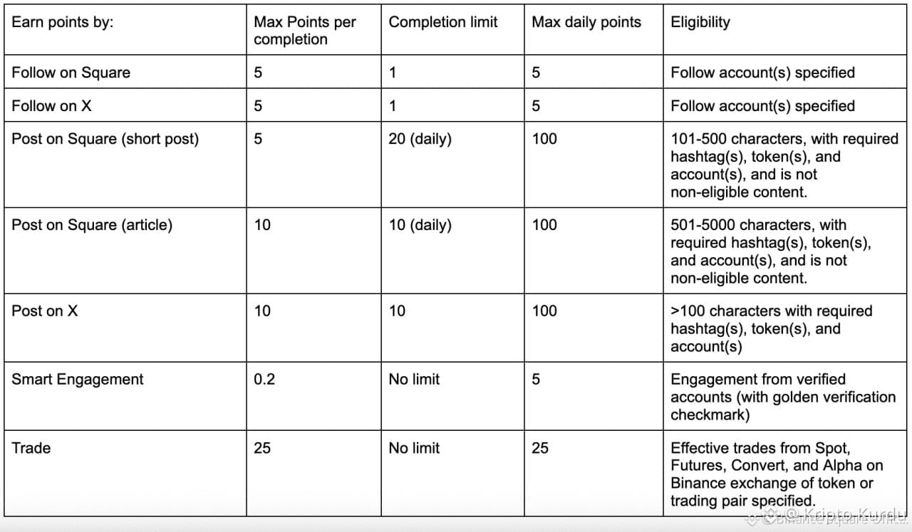 Trade bonus: You can earn up to 25 points per day from trading activity. Spot/Futures/Convert/Alpha trades are included; Web3 wallet transactions are excluded.