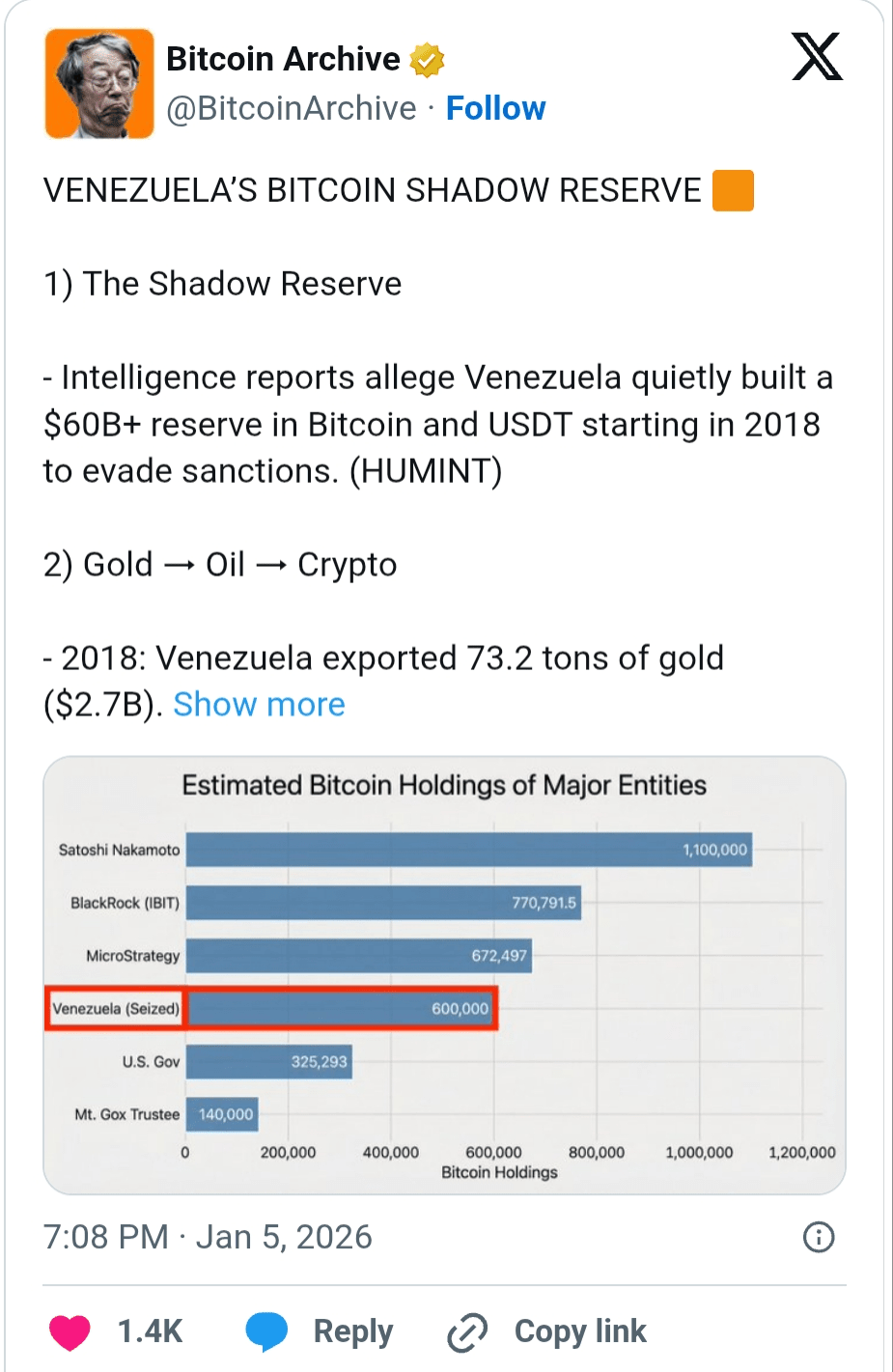 La voce si concentra sull'idea che il Venezuela abbia accumulato in silenzio Bitcoin negli ultimi anni per aggirare le sanzioni.