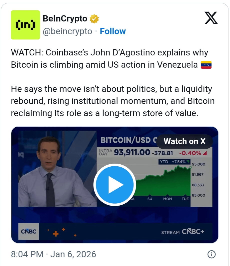 Le speculazioni intorno ai presunti stock di Bitcoin del Venezuela sono aumentate dopo che le forze statunitensi hanno catturato il presidente Nicolás Maduro e lo hanno portato negli Stati Uniti.