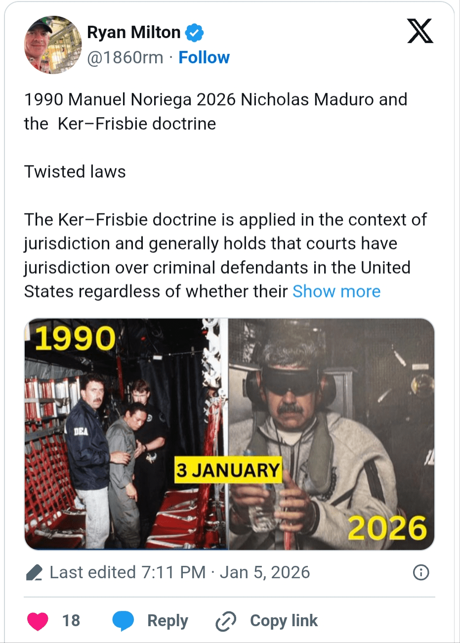 La lunga validità della dottrina Ker–Frisbie consente le procura anche se un imputato viene portato in tribunale attraverso mezzi irregolari.
