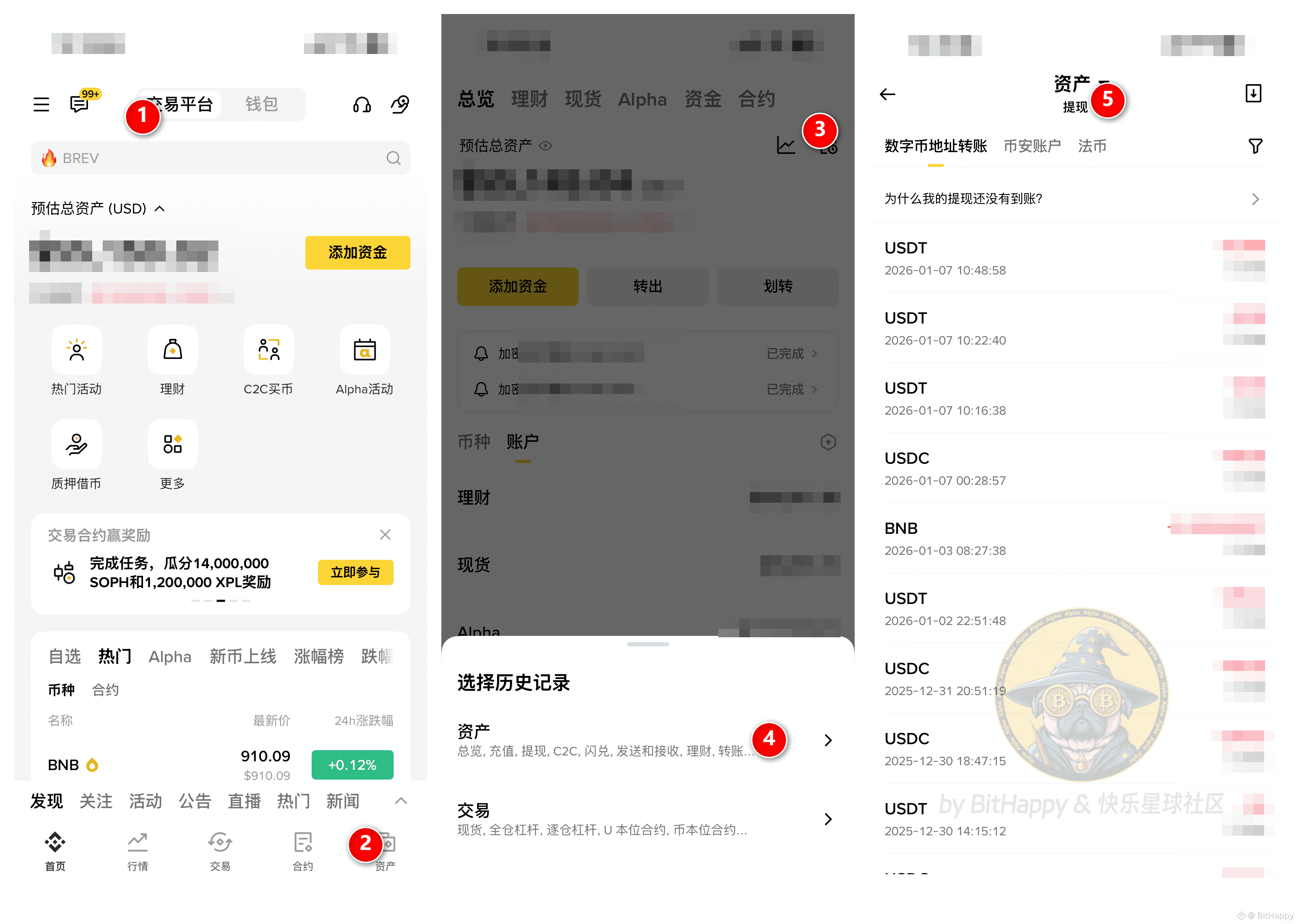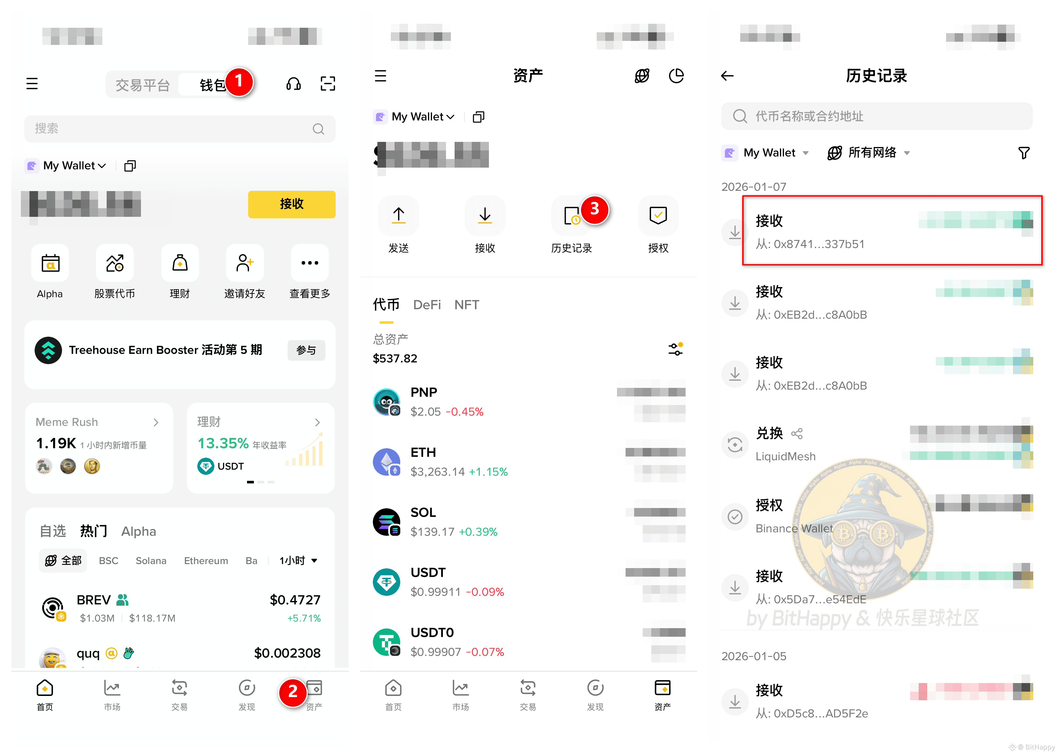 APP → 钱包 → 资产 → 历史记录